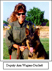 In 1990, Deputy Ann Wagner-Duckett became the first female K-9 handler for the Sheriff's Office.